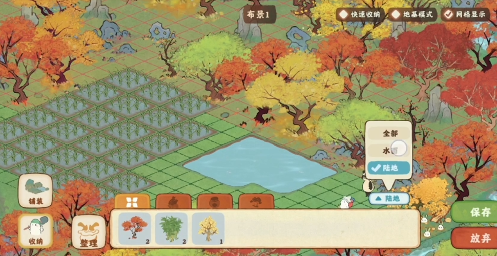 为了让水路看起来更生动,游戏还提供了丰富的装饰选项。你可以在营造功能的装饰分类中找到水面栏目,那里有浮木桥等多种桥梁可供选用。当铺设多个相邻水路格子时,它们会自动连接融合成一片水域,形成池塘或溪流的自然效果。建议先从桃花树到池塘区域铺设主干水路,注意保持整体连贯性但不宜过度密集。通过巧妙的道路组合,你可以把田地和水路穿插布局,这样既美观又方便日常操作。