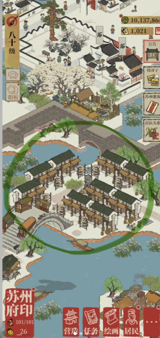 若要追求药铺收益的最大化,尤其是在游戏后期的杭州府,合理的布局规划至关重要。杭州府的特色建筑便民商栈能够为周边的特定店铺提供双倍产出的增益效果,而药铺正是受益店铺之一。为了实现最大经济收益,玩家可以在保证杭州府四种特色商栈齐全的前提下,重点规划便民商栈的布局。大运河最右侧的两个L型港口区域陆地面积最大,是放置便民商栈的理想位置。围绕这两个商栈,尽可能多地建造药铺,例如布局25个药铺,并全部升至5级。在这种布局下,算上双倍增益,每小时可获得可观的铜钱收益,同时占用人口适中,适合定期上线管理的玩家。