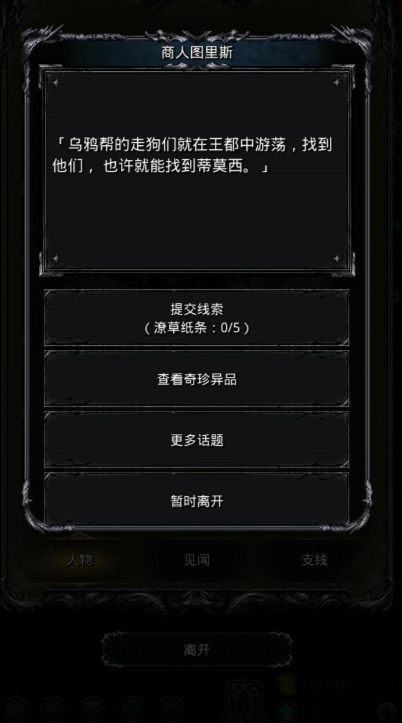 整个乌鸦帮任务链的触发并非始于图九的劫匪,其开端需要玩家先在更早的地图中收集任务物品。玩家需要分别在第十一章地图的特定坐标(42,26)和第十二章地图的坐标(59,34)找到两个密封箱。将这两个密封箱带回城堡交给商人图里斯后,即可正式解锁关于乌鸦的系列任务。