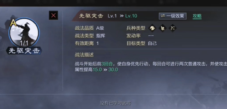 大营输出型皇甫嵩侧重连击与追击战法联动,先驱突击提供稳定连击效果,配合疾击其后可打出多段物理追击伤害,每一段伤害都能触发京观垒冢的额外判定,短时间内堆叠海量伤害,也可替换为三军齐出,普攻后触发分兵效果,分兵伤害同样能联动被动,扩大输出覆盖范围,此搭配适合与张辽、陆抗组队,依托连击与增伤效果打爆发,面对低坦度队伍可快速击穿防线,加点优先攻击与谋略均衡,确保物理与策略伤害双收益,兵种转为重步提升生存,避免被快速集火倒地。