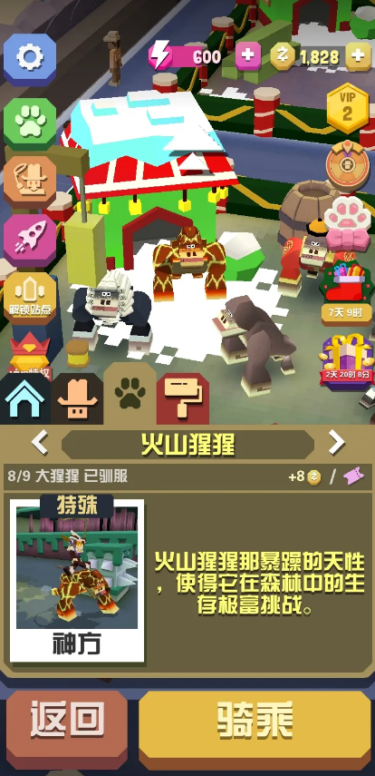 驯服过程中要时刻关注动物状态,普通动物驯服条较短,快速点击即可完成,部分动物会在驯服中途进入狂暴,出现甩动、冲撞动作,此时需加快点击频率,稳住套索不脱落,若动物狂暴过强,可提前准备换乘,避免坠落失败。地形对抓捕影响显著,草原地形开阔平坦,适合抓捕斑马、野牛、狮子等动物,能轻松预判路线;丛林地形树木、岩石密集,河马、猩猩、鳄鱼等动物多在此出没,需利用水域、空地减少障碍物干扰,骑乘河马时优先走水路,延缓狂暴速度。山脉地形高低落差大,老鹰、牦牛、山羊等动物活跃,抓捕老鹰要沿跑道边缘灌木丛飞行,保持高空稳定路线,抓捕牦牛可借助其冲撞特性,清理障碍同时触发特殊动物条件。