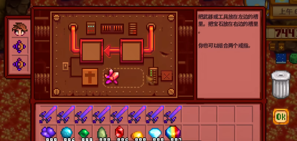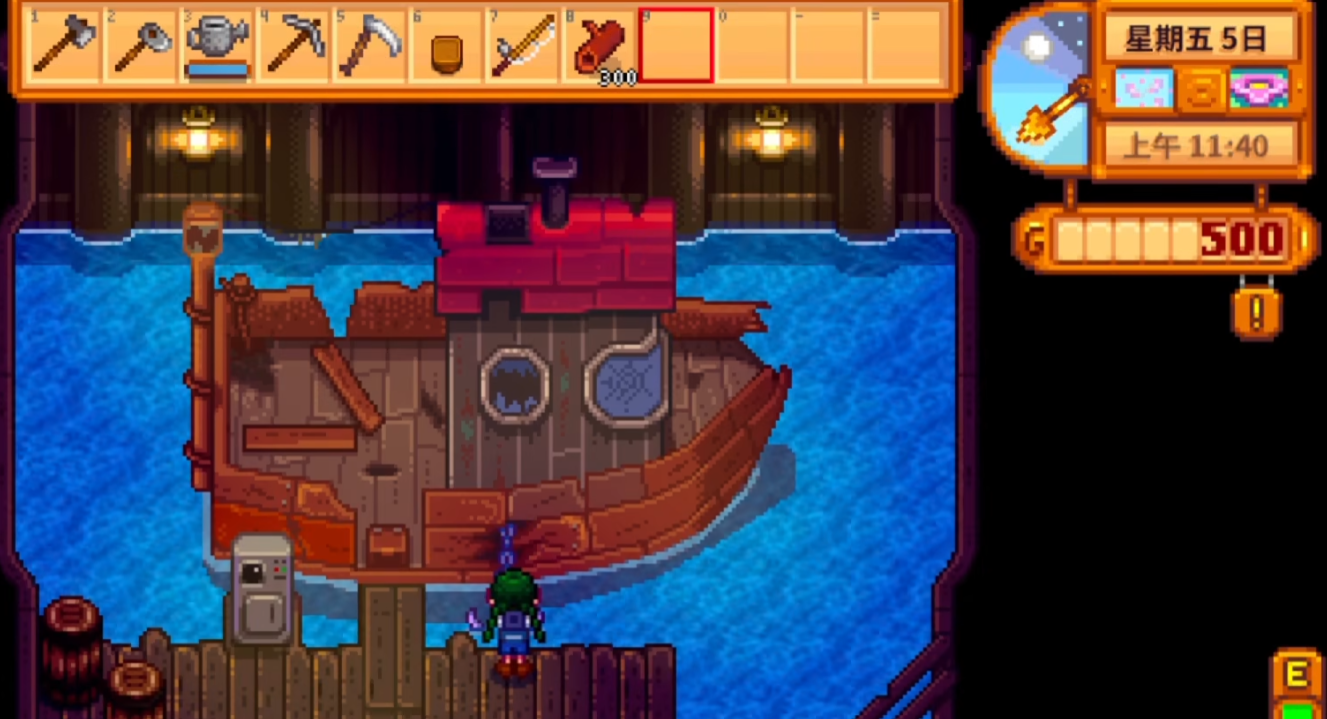 前往姜岛前需确保携带修复船只的材料:200硬木、5电池组和5铱锭。硬木可通过升级后的铁斧砍伐大木桩获取,秘密花园是硬木最集中的区域。电池组需通过避雷针在雷雨天气生成,制作避雷针需要铁锭、精炼石英和蝙蝠翅膀。铱锭则需在矿洞深处开采铱矿石熔炼而成。修复完成后,需支付1000金币购买船票方可登岛。
