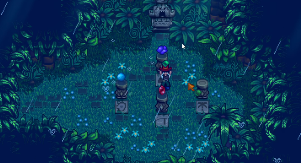 如果想加快进度,可以使用降雨图腾让姜岛下雨,这样能更快遇到宝石鸟。姜岛和鹈鹕镇的天气是分开的,必须在姜岛使用降雨图腾才会生效。完成解谜后,我们会获得五个金核桃作为奖励,这对推进姜岛剧情很有帮助。