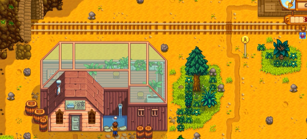 温泉是咱们在星露谷里恢复体力的好地方,尤其是前期食物不足的时候特别实用。想要泡温泉,首先得解锁它。游戏刚开始时温泉入口被石头堵住,直到夏季第一天晚上发生地震后,通往温泉的路才会打开。从农场出发,往北走到木匠商店附近,再沿着铁轨一直往右走就能看到温泉小屋。记得带上空背包,因为更衣室里有储物箱可以存放物品。