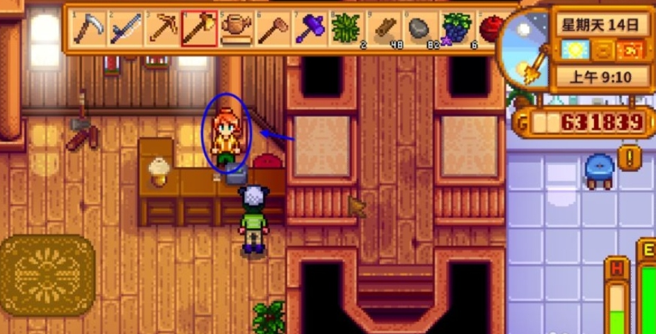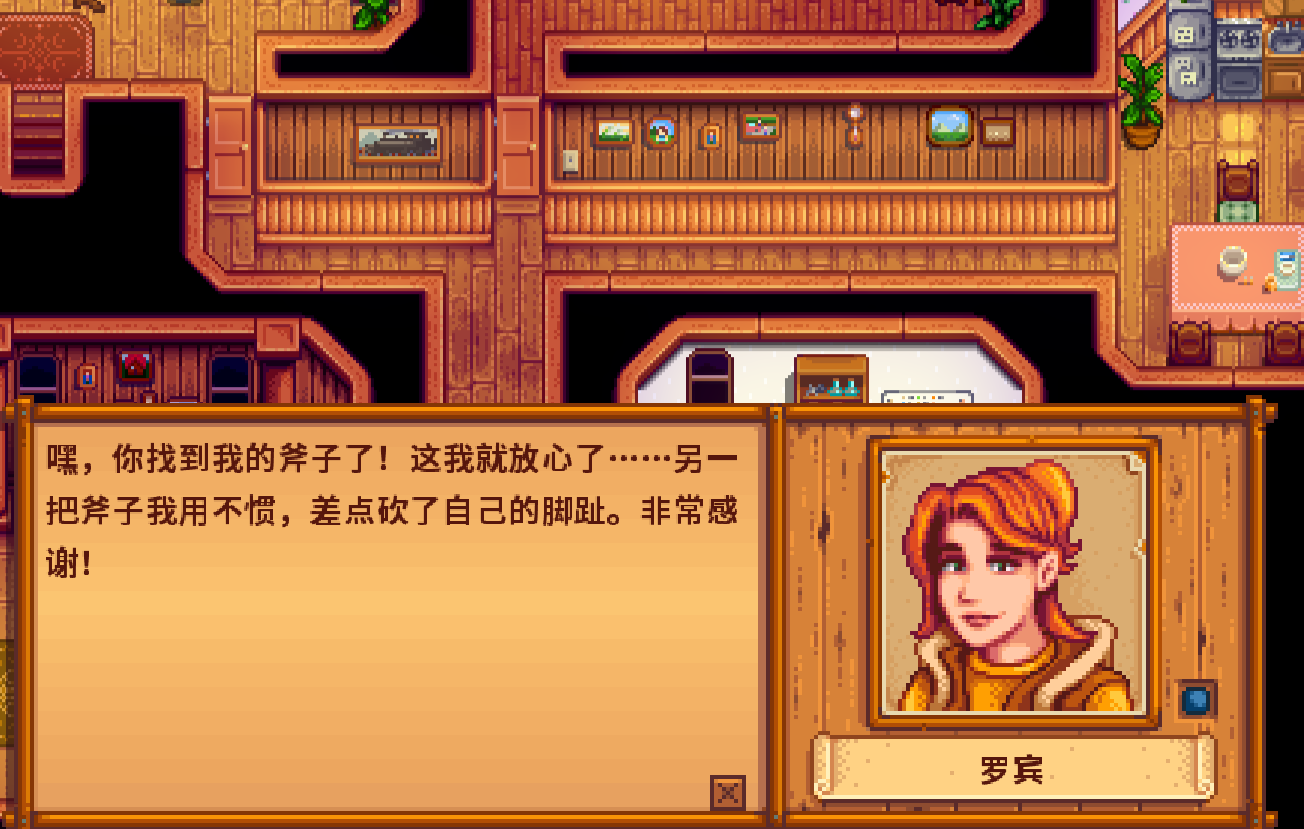 找到店铺后,直接进门就能看到罗宾站在收银台旁边。点击收银台可以查看建造菜单,比如升级房子或者盖畜棚。如果想和她聊天或者接任务,记得对着她本人点击,这样才会触发对话。有时候她会发布找斧头的任务,斧头通常落在玛妮牧场南边的树林里,找到后交给她能拿到250金币奖励。