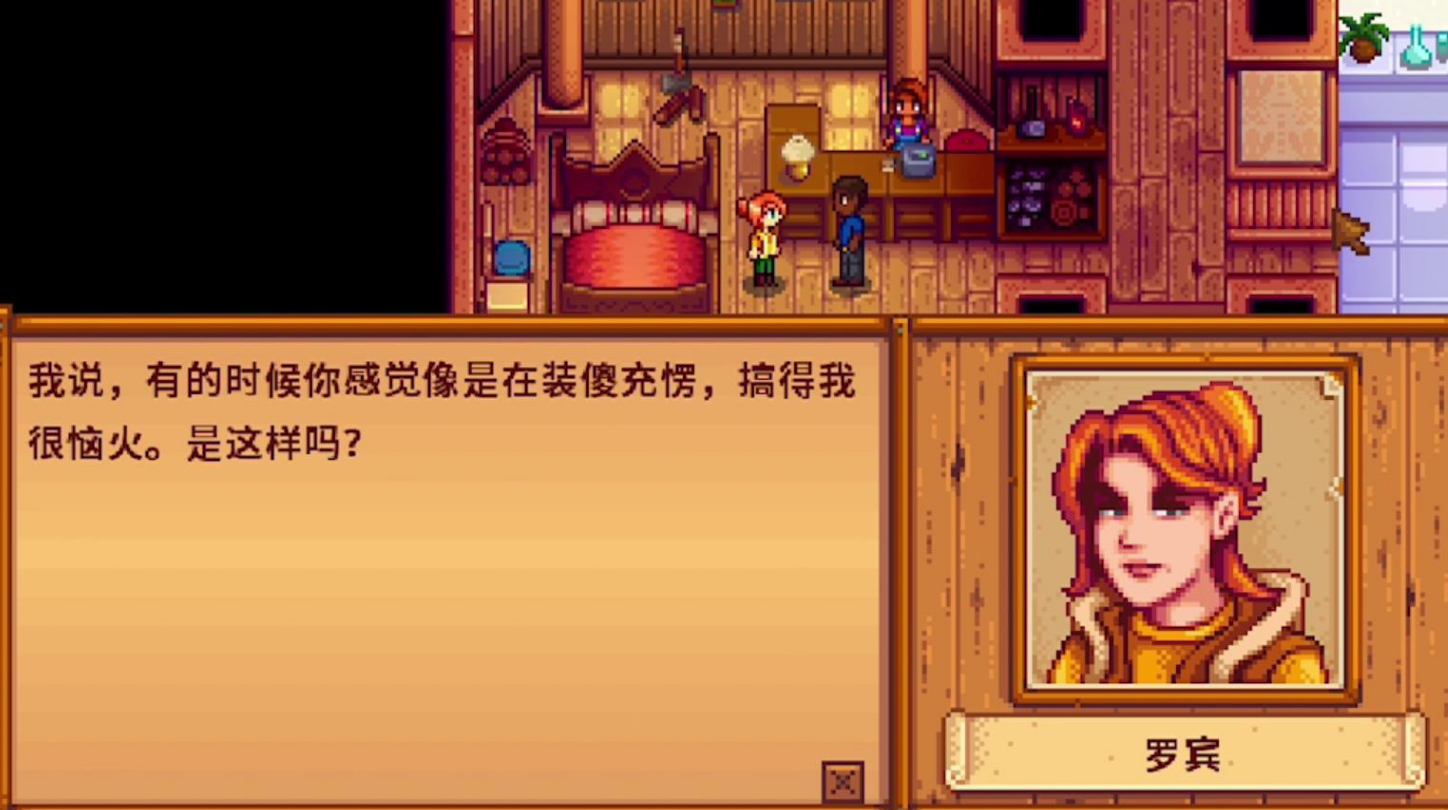 如果发现罗宾不在店里,别着急,她可能去参加活动了。比如周五下午4点后,她会和丈夫德米特里厄斯去酒吧跳舞;周二上午则可能去皮埃尔杂货店跳健美操。夏季18日她还会去哈维的诊所。如果接了建筑任务,她会在你的农场忙活两天,这时候店铺也会关门,直接去工地找她就对啦。
