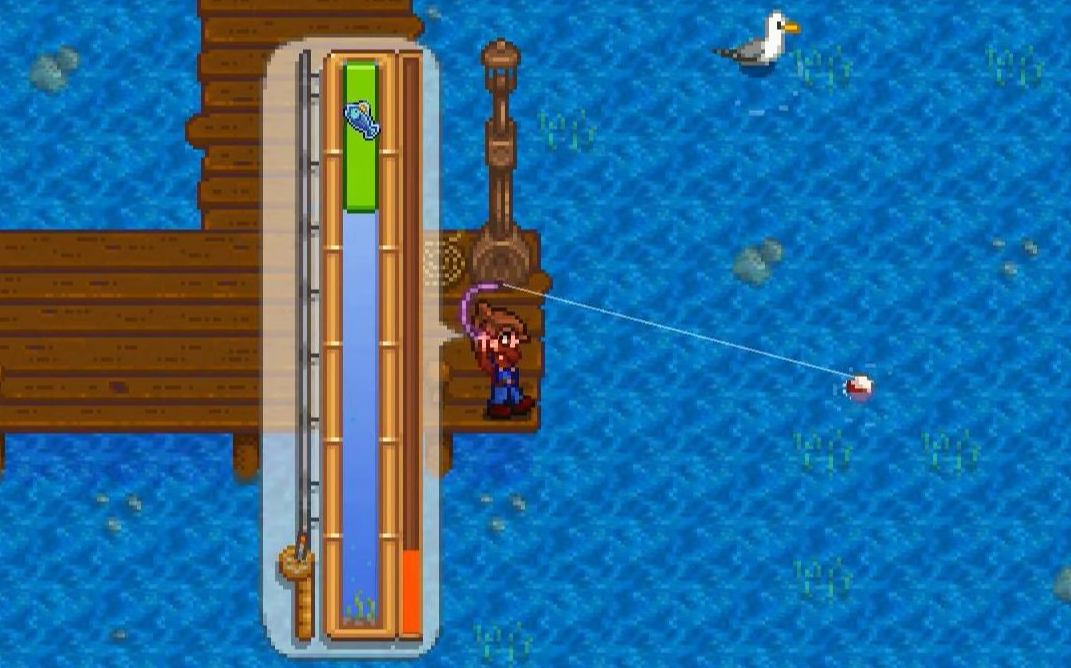 浇水完成后,直奔海滩找威利领取钓鱼竿。钓鱼是前期赚钱的重要方式,虽然操作可能有点难,但多练习就能上手。建议直接在海边钓到体力耗尽,钓到的鱼可以卖掉换钱,记得留一条每种鱼备用。如果觉得太难,威利的店里还有新手鱼竿,操作更简单。钓鱼时注意时间,别错过晚上回家的点,凌晨2点前必须睡觉。