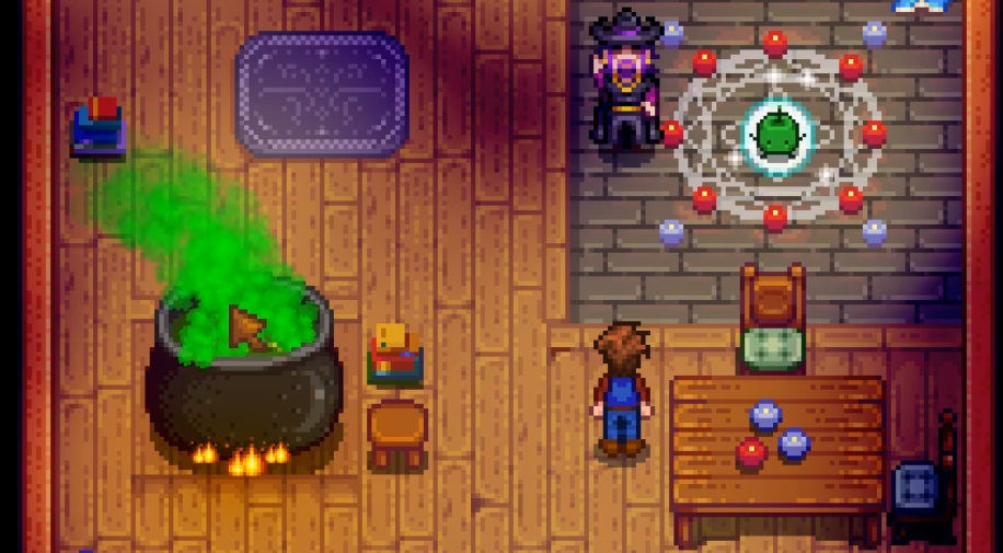 进入法师塔后,你会发现一楼是法师的住所,而想要探索后面的区域,比如地下室或二楼,就需要进一步操作。和法师搞好关系是关键,每周可以送他两次礼物,紫蘑菇、太阳精华、虚空精华这些是他最喜欢的。当你们的好感度达到4颗心后,就能直接进入地下室了。地下室有个幻觉神龛,花500金币可以修改角色外观、性别等初始信息。