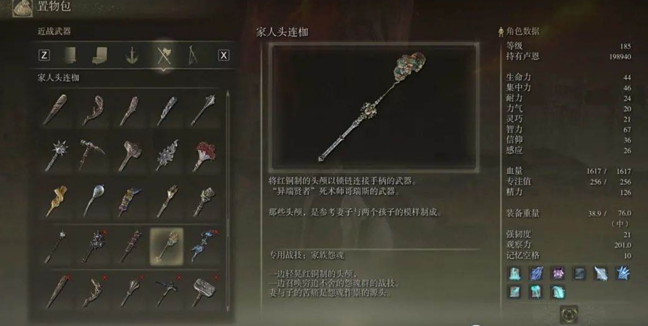普通连枷可以在宁姆格福的关卡前废墟宝箱中找到,黑夜骑兵连枷需要击败啜泣半岛的黑夜骑兵,家人头连枷则藏在贤者洞窟的BOSS战中。弃子的繁星需要用黑暗弃子的追忆兑换。拿到链枷后,记得根据战技特点调整使用方式。回旋锁链适合贴身缠斗,家族冤魂适合拉扯,黑暗星云则适合预判敌人走位。
