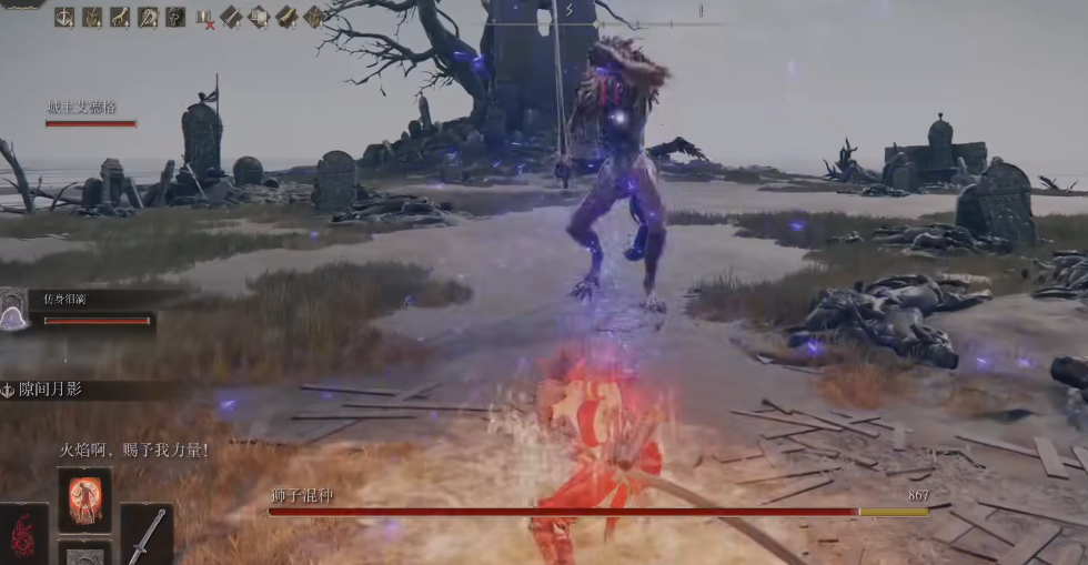 摩恩城核心战斗是击败混种狮子BOSS获取剑骸大剑。该BOSS位于城堡最深处的海滩,穿过城墙监狱旁赐福点,过桥后下梯子即可到达战场。混种狮子行动敏捷,攻击以巨剑挥砍为主,建议35-40级挑战。战术上可召唤野狼灵魂吸引仇恨,远程职业保持距离输出,近战需掌握翻滚时机攻击侧身。击败后获得传说武器剑骸大剑,这是支线任务的关键物品。