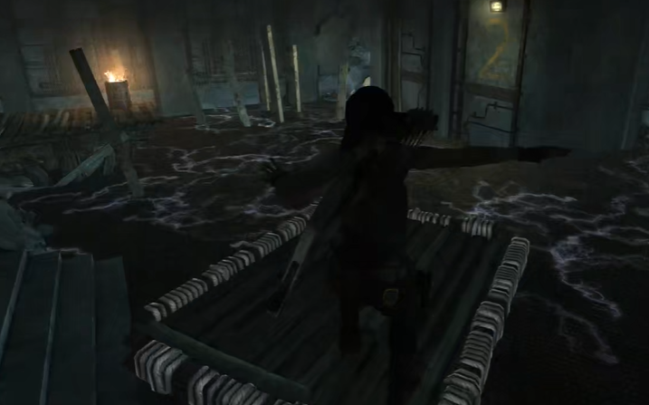 进入带电水域区域后,需优先关闭或干扰导电装置。部分场景需要拉动重物使电灯升起,从而暂时切断水体电流。需把握短暂的安全窗口快速通过,若操作延迟可能导致触电。若水体恢复导电状态,需重复拉动机关,并利用木筏卡住电灯防止其回落。某些关卡还需借助绳索箭矢连接远处机关,或点燃特定物体以改变环境布局,确保路径畅通。