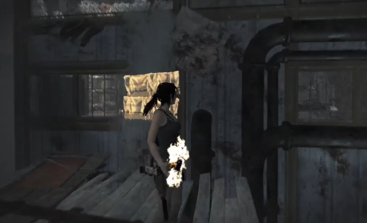首先进入红色矿坑,左边有个通往下层的小道,跳过去从小道出来有营火。从营火出发跳到对面有一个小平台,提示烧掉被水流挡住的破布。这里需要制作燃烧瓶,用酒瓶和布料组合,但直接扔会被水流熄灭,必须从漏水的管道上方抛形成抛物线轨迹才能成功烧毁障碍物。