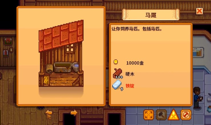 马是重要的交通工具,能显著提升移动效率。要让马回到马厩,首先需要明确马厩的建造条件:通过木匠罗宾的商店花费10000金币、100硬木和5铁锭建造马厩,完成后会自动获得一匹马。马厩是马的核心归属点,若马厩被拆除,马会停留在最后的位置,不会自动返回。