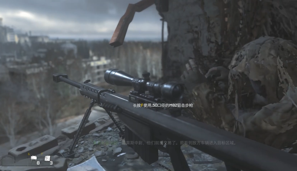 任务开始后,跟随麦克米兰的指引到达指定狙击位置。注意保持隐蔽,避免被巡逻士兵发现。当扎卡耶夫出现时,观察周围环境中的旗帜或纸片判断风向,这是影响子弹轨迹的关键因素。瞄准时需将准星略微抬高以补偿子弹下坠,同时根据风向将准星向相反方向微调。射击时机应选择在扎卡耶夫短暂停留的瞬间。