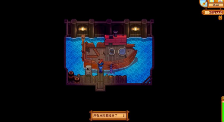 前往姜岛需要先完成社区中心的全部献祭任务,或者选择完成乔家超市的社区发展申请书。完成其中任一条件后,玩家会在第二天收到渔夫威利的来信,邀请你前往他的鱼店。进入鱼店后,你会发现后门可以打开,里面有一艘待修复的旧船。修复这艘船需要提交特定的材料,通常包括硬木、电池组和铱锭。集齐材料完成修复后,支付1000金购买船票,即可乘船前往姜岛。