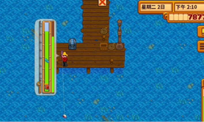 钓鱼活动始于获得鱼竿,游戏初期渔夫威利会赠送一根基础鱼竿。开始钓鱼时,你需要面对水域长按屏幕进行抛竿,蓄力越久抛投距离越远,将鱼钩投入深水区有助于获得更高品质的鱼类。当鱼咬钩时,屏幕会出现提示并伴有特殊音效,此时需迅速点击屏幕进入钓鱼小游戏环节。该环节的核心是操控一个绿色的能量条,通过按住屏幕使其上升、松开使其下降,目标是让这个绿条始终覆盖住一条上下跳跃的鱼形图标。成功覆盖时,右侧的捕获进度条会增长,一旦脱离则进度条下降,必须在进度条清空前将其填满才能钓获鱼类。钓鱼技能等级的提升,这个绿色控制条会逐渐变宽,操作容错率也会相应提高。