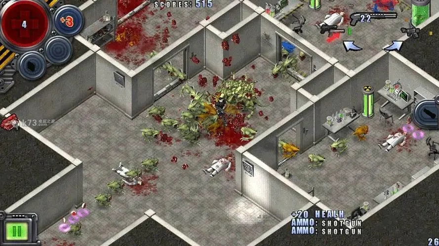进入第6关军用仓库区域后,优先抢占西北侧双层货架制高点,这里能利用高度差规避地面怪物与机甲的交叉火力,是前期最安全的输出位。主武器选择能量武器大绿,副武器搭配GT-9霰弹枪,提前在商店囤积至少1000发能量弹药,加上地图拾取的弹药总量保持2500发左右,应对成群的榴弹大头怪与快速蝎子群时,大绿能快速清场,霰弹枪则用来处理近身突袭的自爆虫。仓库南侧会持续刷新机甲与步兵增援,遇到重型机甲直接投掷EMP干扰手雷瘫痪目标,集中火力清理步兵,每清完一波敌人立刻转移掩体,避免停在原地被火箭弹锁定攻击。仓库东侧控制室有固定补给点,清理完该区域后及时补充弹药与装甲,不要错过角落的隐藏房间,里面的武器与芯片可售卖换钱,进一步补充资源。